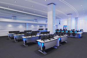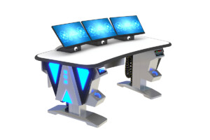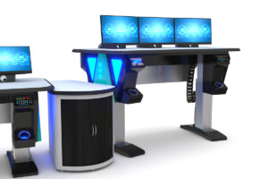operator console for inquire desk, technical console, intelligence monitoring console, control room furniture, dispatch console, a sit-stand console, height adjustable console