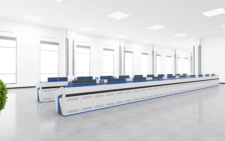 The control console installation space is designed as a semi-open space. The bottom cabinet and the rear aluminum profile screen structure can be flexibly installed with different devices, which can make the universality and adjustability of the equipment strong. And at the same time, it provides users with the greatest equipment installation convenience. The operator is free to adjust the position of the display according to personal preference. The bottom cabinet of the operating station is suitable for installing hosts and workstations of various sizes. The operator console is a combination of iron and wood structure. The cabinet is designed as an independent chamber. There is a perfect cooling system, reasonable ventilation channel to ensure that the equipment full heat dissipation and normal work. The hot air does not harm the operator.