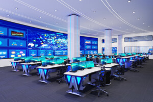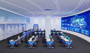 operator console for inquire desk, technical console, intelligence monitoring console, control room furniture, dispatch console, a sit-stand console, height adjustable console